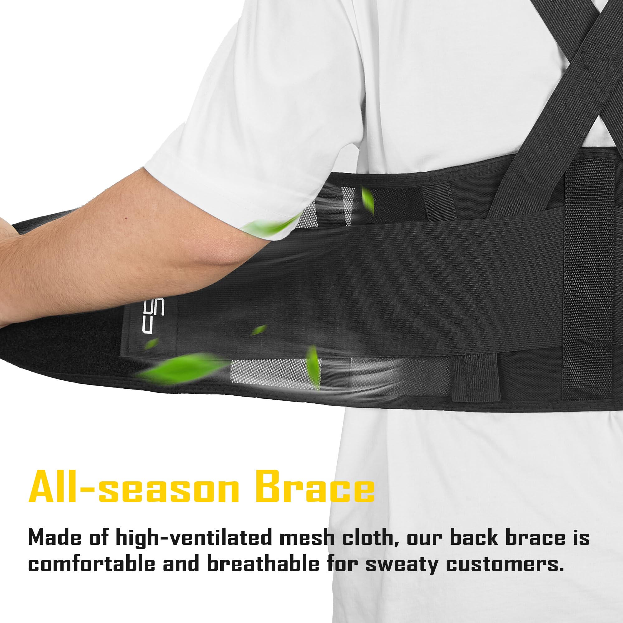 - Versatile & Adjustable Design:** Includes a removable, detachable suspender strap to keep support secure and ready. Wear discreetly under or over clothes. Moderate support with 7" front height and 8" back height conforms to your body for safe posture during work or daily life.
